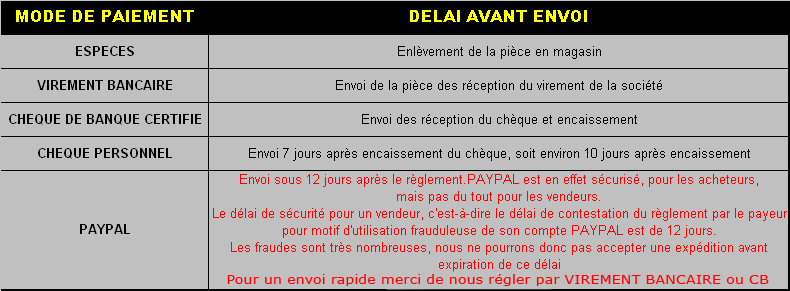 A l'encaissement de votre règlement votre commande vous sera envoyée avec sa facture dans les délais suivants :
